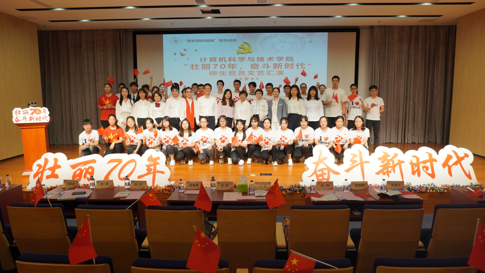 9月24日,新中国即将迎来成立70周年之际,计算机学院举行“我和我的祖国”系列活动之“壮丽70年,奋斗新时代”师生党员文艺汇演,全院师生党员及学生代表以合唱、舞蹈、朗诵、情景剧等形式讴歌祖国,充分展现70年来特别是党的十八大以来的历史性变革和成就,营造浓厚庆祝氛围。本次汇演邀请学院党建共建单位松江区人才服务中心副主任柴春燕,星辰园居委会委员吴芸参加,计算机学院全体党政班子成员以及全体师生党员和部分学生代表出席活动。