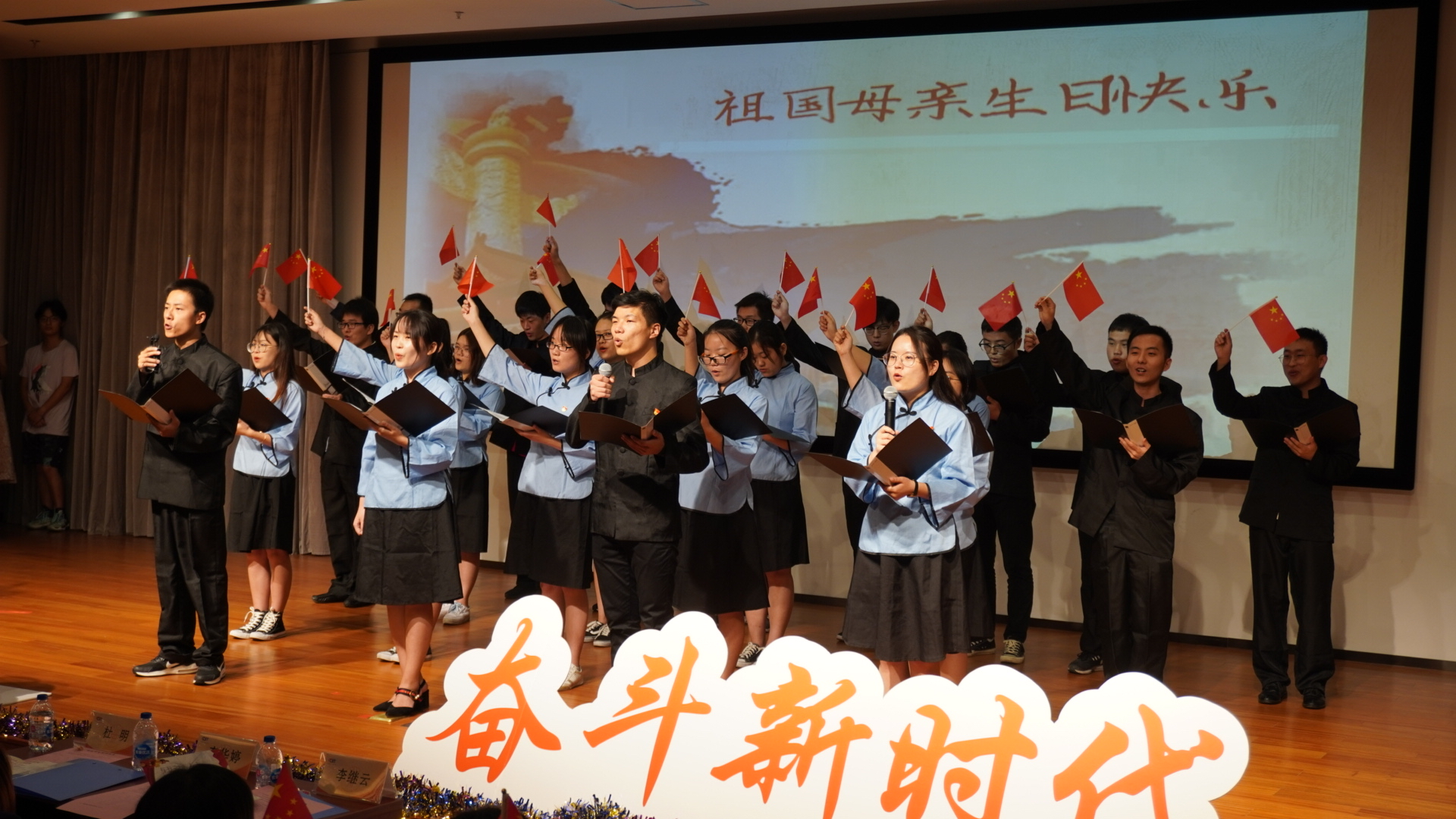 本次活动紧扣“我和我的祖国”专题教育,围绕“初心颂——不忘初心,与国同梦”,“爱国情——峥嵘岁月,同心筑梦”,“奋斗者——砥砺前行,奋斗圆梦”三个篇章,以初心追梦者、爱国筑梦者、奋斗圆梦者的形式表现计算机学院的党员师生对于祖国70岁的庆生之情。其中,软件系教工支部伴随激昂的旋律,以祖国70年的奋斗史为背景,讲述了东华人的爱国情。平行专业学生党支部以创新情景剧的方式,结合朗诵,歌曲,通过祖孙三代人展示祖国70年的变化。由学院专职辅导员张政老师与相声社社长张祎阳同学带来的相声《环游世界》,用风趣幽默的语言展示了环游世界还是祖国最好的朴素情感,将全场气氛推向高潮,在欢声笑语中共同为祖国庆生。