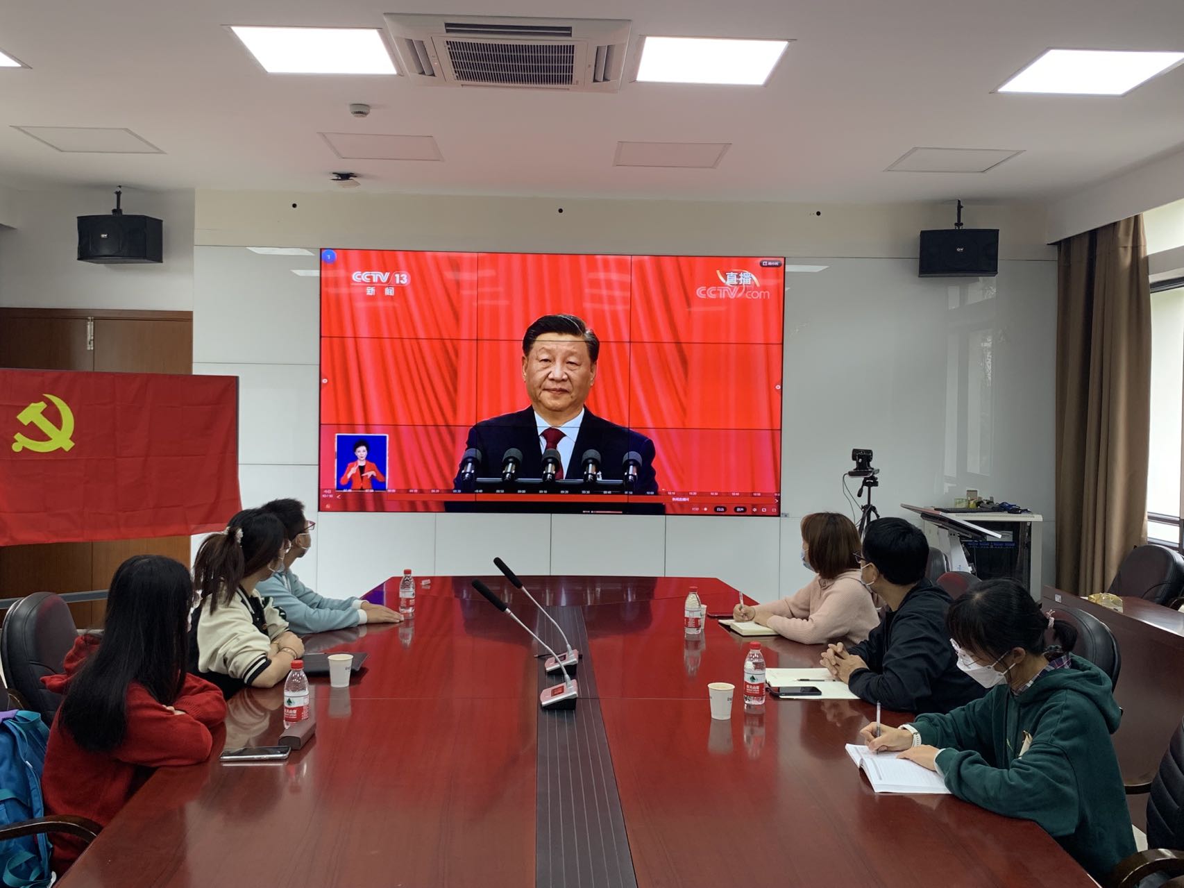 龙8-long8(头号玩家)国际唯一官方网站组织师生代表于学院楼240会议室集中收看党的二十大开幕会,各党团支部等也纷纷通过电视、广播、网络等多样化的方式组织师生进行收看收听,学院广大师生对党的二十大胜利召开倍感欢欣鼓舞,认真学习党的二十大报告并展开了热烈讨论。