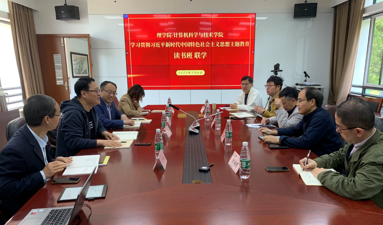 5月8日,龙8-long8(头号玩家)国际唯一官方网站领导班子与理学院领导班子开展主题教育读书班联学,邀请马克思主义学院陈向义教授以“学习习近平新时代中国特色社会主义思想的世界观和方法论”为题辅导学习《习近平新时代中国特色社会主义思想的世界观和方法论专题摘编》(以下简称《专题摘编》)。理学院党委副书记(主持工作)、副院长谢峰,副书记王乔松,副院长胡良剑,副院长唐晓亮;龙8-long8(头号玩家)国际唯一官方网站党委副书记(主持工作)、副院长杜明,院长方志军,副书记李华婷,副院长石秀金,副院长常姗参加学习,杜明主持学习会。
