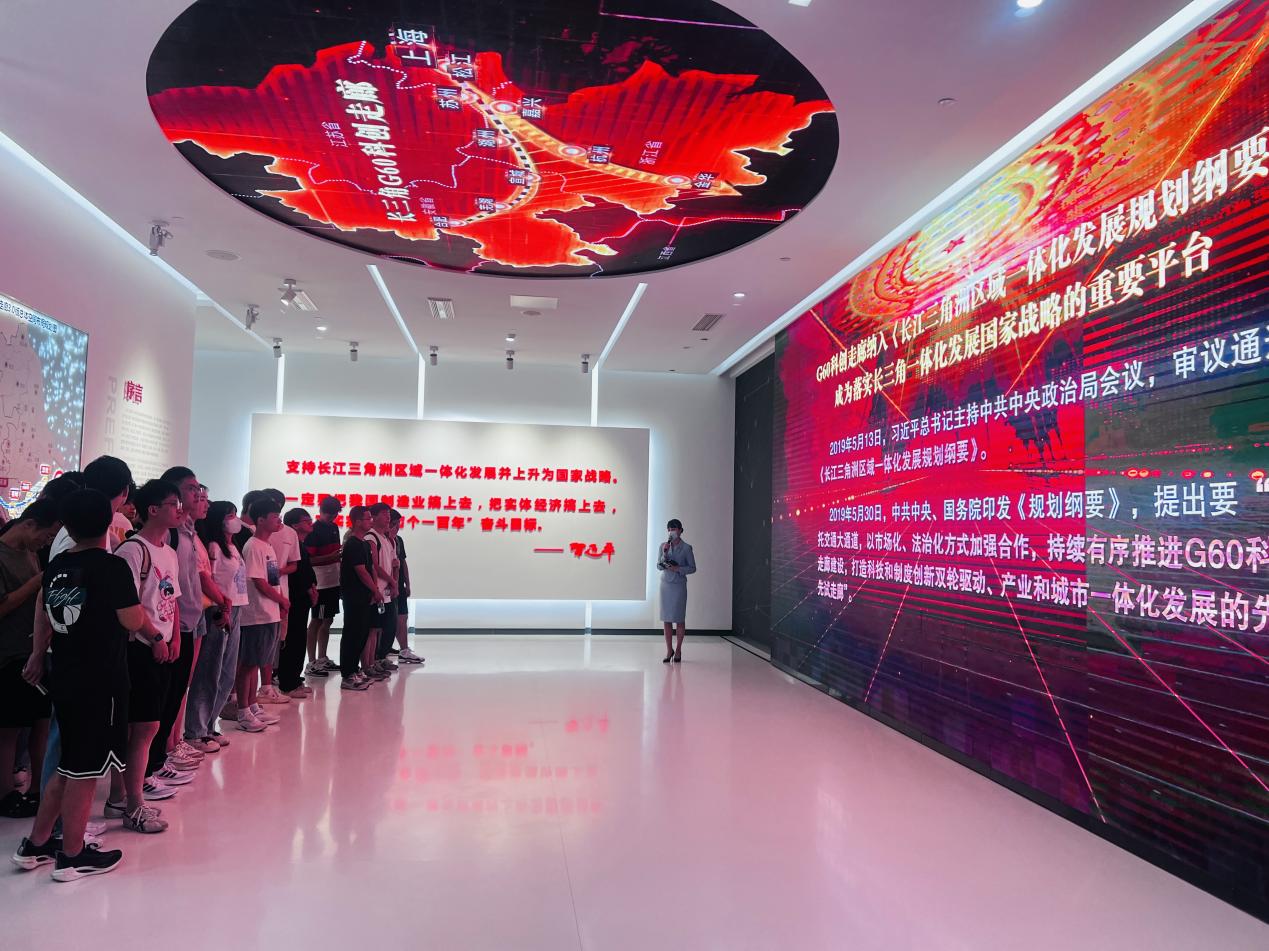 会后,全体同学依次参观了G60科创云廊体验馆、长三角G60科创走廊规划展示馆、长三角G60工业互联网创新应用体验中心。通过参观实物的形式,直观地了解了人工智能、高端装备、集成电路、新材料、新能源汽车、生物医药等战略性新兴产业方面的发展成果,真切感受G60科创走廊“科技创新”“制度创新”的双轮驱动成效。