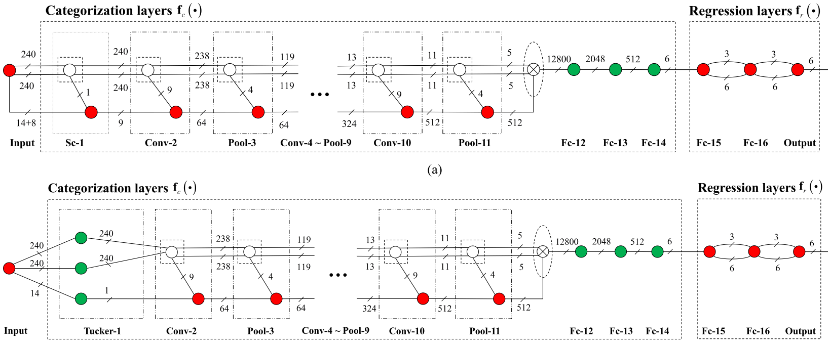 该工作基于热带气旋的多光谱遥感图像,提出一种新型的深度学习网络:张量网络。多光谱和高光谱遥感图像都是高维数据,具有两个空间维和一个光谱维,其中光谱维涵盖数个到数百个波段,蕴含丰富信息。相较于单波段红外图像,多光谱图像能够反应热带气旋更多特征,我国风云四号气象卫星的多通道数据具有较高的光谱分辨率,为精准分析发源于西北太平洋的热带气旋提供数据支持,有利于提升台风预报等气象业务水平。然而,高维图像往往含有大量冗余数据,普通的卷积神经网络无法自动剔除无用数据。为解决以上问题,该工作采用张量表示多光谱图像,以保持多光谱图像的原有数据结构并提取有物理意义的多维特征;揭示张量分析与神经网络的数学联系,利用张量缩并这一运算操作统一表达张量分解、卷积、池化、全连接,构建深度张量网络,提取高维图像的非线性隐含低秩特征;将提出的网络成功用于风云四号气象卫星多通道数据分析以及热带气旋定强,验证风云四号数据的应用价值。提出的热带气旋定强架构和张量网络结构如下图所示。本工作发表在SCI一区期刊IEEE Transactions on Geoscience and Remote Sensing,影响因子8.2,标题为A novel tensor network for tropical cyclone intensity estimation,一作与通讯作者为陈昭老师,学生一作为研究生于兴兴,迄今被引26次。
