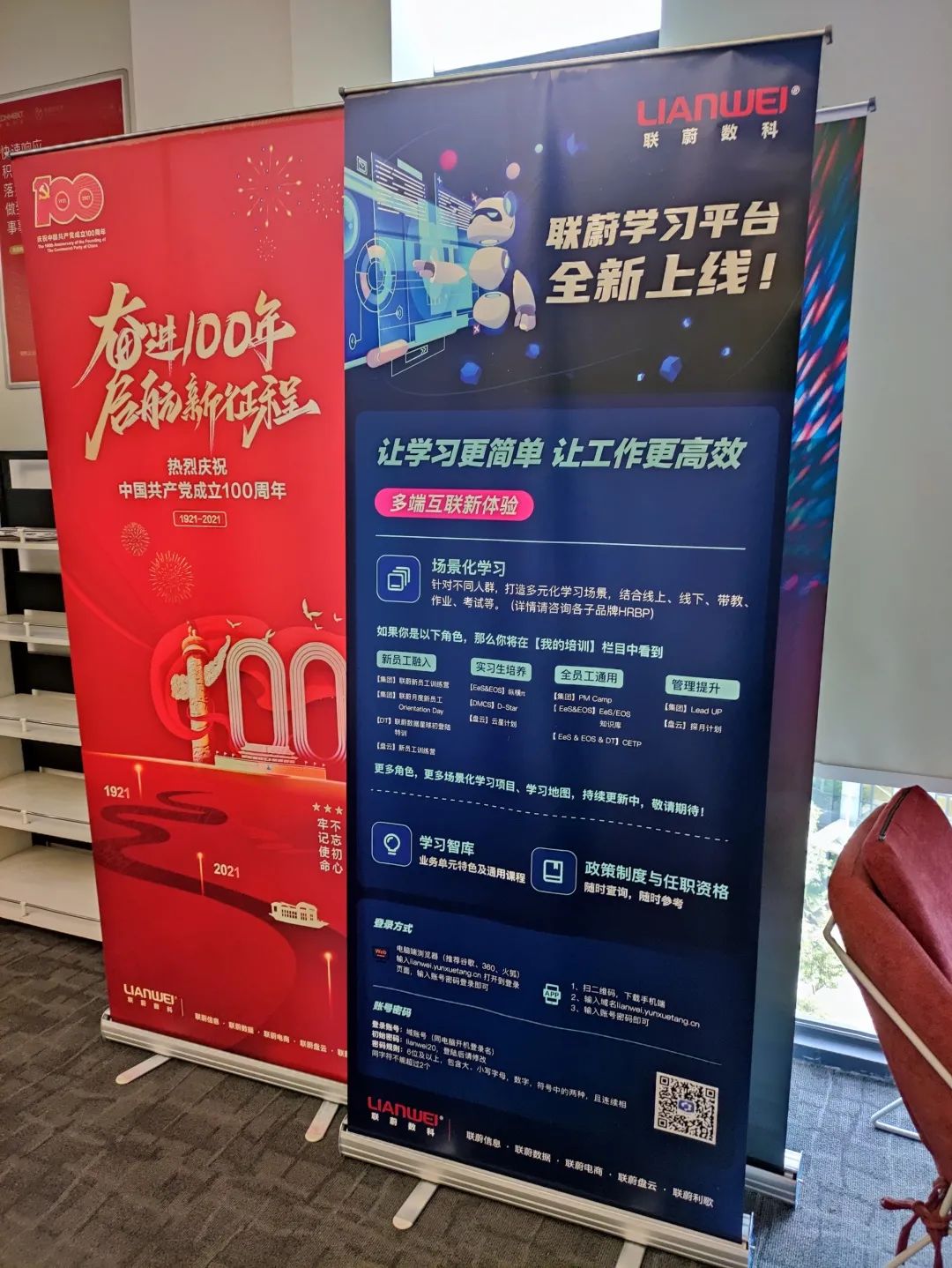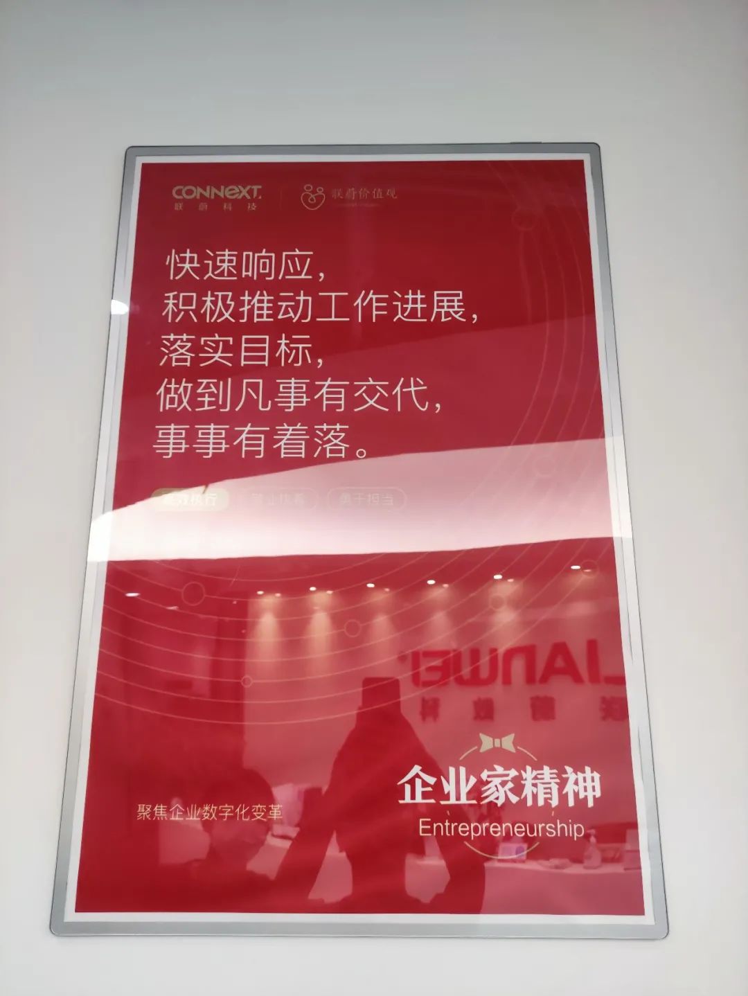 ——联蔚价值观展示牌和公司门口摆放的立牌