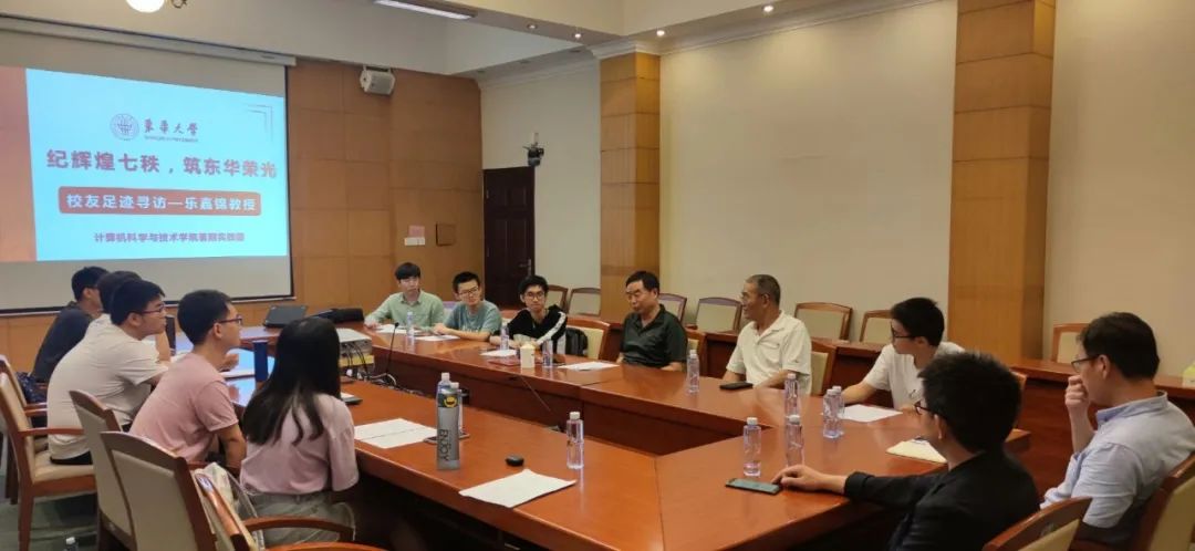 乐教授对自己的求学和科研经历总结出的最大要点是对所学知识的兴趣和对自己的自信。乐教授说,他能够在众多计算机科学的子专业中选择研究数据库,并取得斐然的成果,其核心就是他对于数据库领域的浓厚兴趣。同样,乐教授在2004年毅然选择从信息学院独立出去,创建计算机学院并撑起计算机学院的科研运营,教学工作,也是缘于他和他的同事搭档们对自身能力的充足自信。他在教学中同样贯彻了这种理念。他回忆道,以前他在东华教计算机导论,授课的重中之重就是培养学生学习计算机的兴趣。他在对东华学子们的寄语之中说道:“我希望你们在本科毕业的时候,还能像初入大学时那样,眼睛里闪闪发光,身上充满打磨不掉的锐气。”这一言令实践团成员们感触颇深。