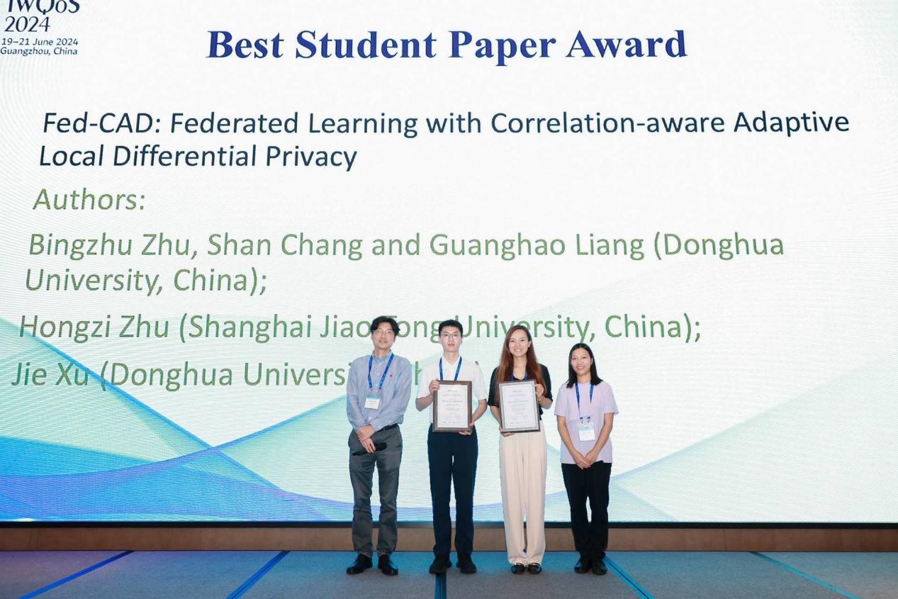 IEEE/ACM IWQoS会议 (International Symposium on Quality of Service) 于6月19日- 6 月21日在香港科技大学(广州)举行,龙8-long8(头号玩家)国际唯一官方网站龙8-long8(头号玩家)国际唯一官方网站常姗教授团队针对联邦学习本地化差分隐私技术的最新研究成果“Fed-CAD: Federated Learning with Correlation-aware Local differential privacy”获得本次会议的唯一最佳学生论文奖(Best Student Paper Award)。