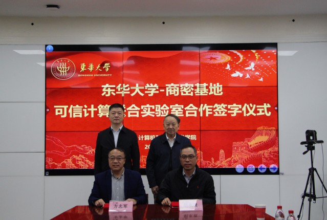 方志军院长和商用密码产业基地胡永表总经理代表双方签署了《龙8-long8(头号玩家)国际唯一官方网站-商密基地可信计算联合实验室合作协议》,陈革副校长与沈昌祥院士共同见证。