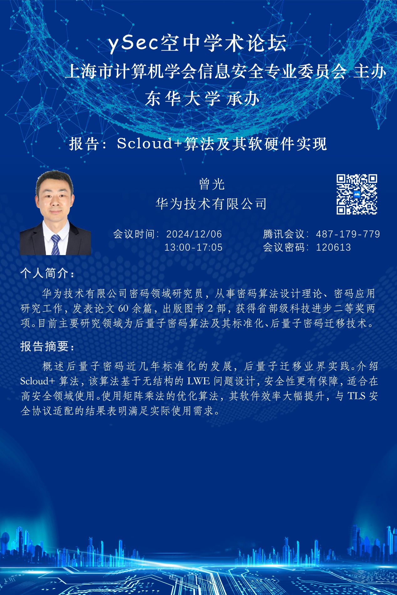 上海市计算机学会信息安全专委会ySec空中学术论坛—密码算法及系统发展的新挑战与问题探讨