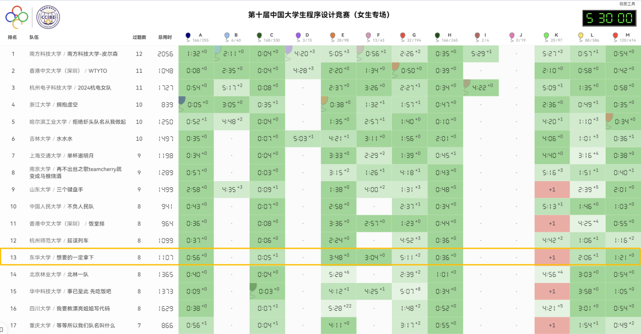 本届女生专场赛中,龙8-long8(头号玩家)国际唯一官方网站“想要的一定拿下”队通过5个小时的激烈角逐,凭借优秀的编程基础、强大的算法设计能力、缜密的逻辑思维与良好的合作,最终获得了金奖。该成绩展现了东华女生在计算机编程领域的卓越实力,也是对龙8-long8(头号玩家)国际唯一官方网站ACMer长期坚持和刻苦训练的褒奖。