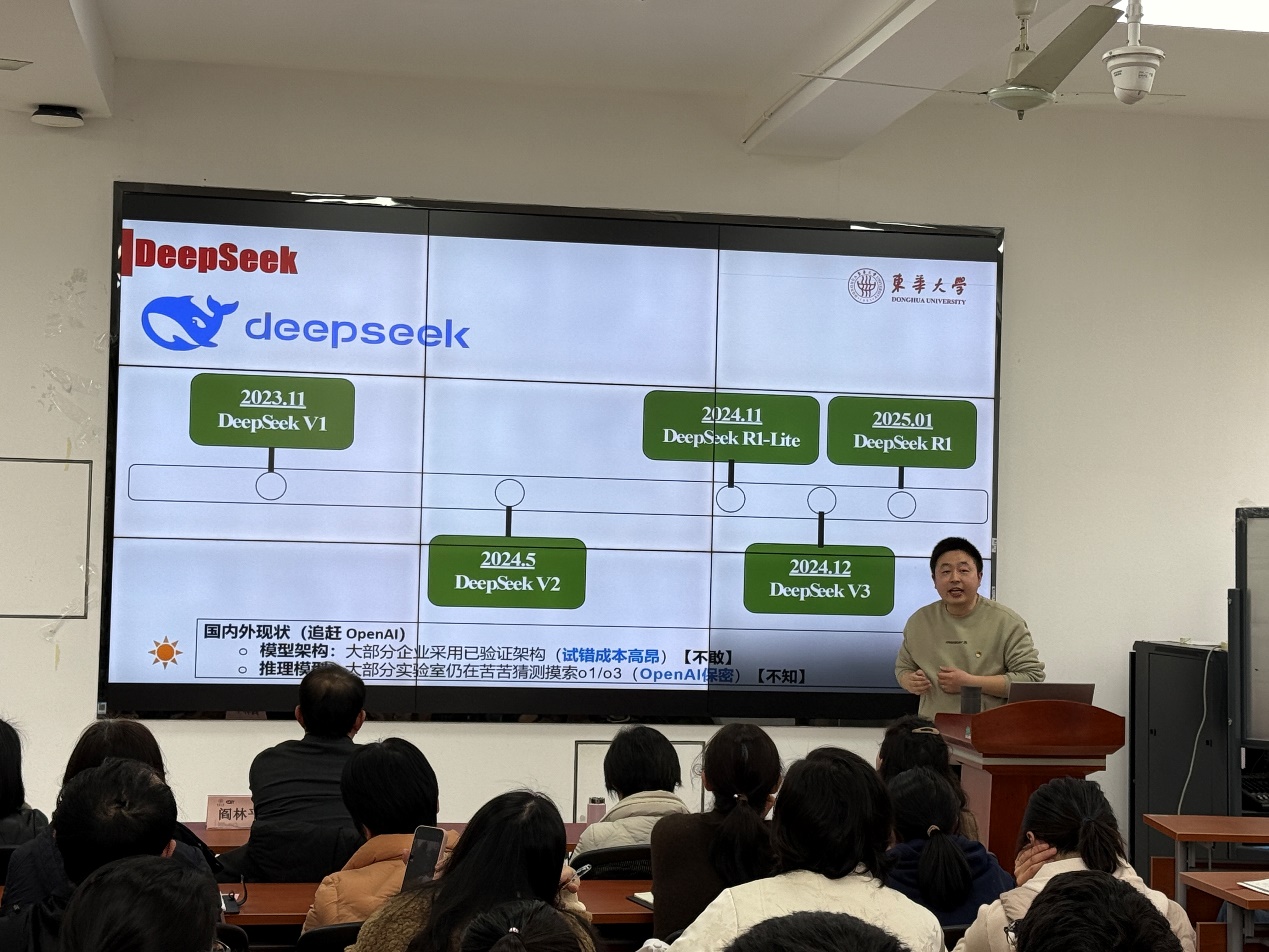 活动伊始,龙8-long8(头号玩家)国际唯一官方网站党委书记杜明致辞。杜明对与会师生表示欢迎。他表示,学院党委一直致力于为师生搭建学术交流的优质平台。本次以“智慧党建 深度求索”为的主题的党建联建共建活动,由学院多个党支部与资产管理处党支部共同精心组织,旨在积极发挥学院AI学科特长,推动相关技术融入教学、科研和管理工作,助力学校各项事业高质量发展。由于DeepSeek是当前热点,吸引了多个职能部处和学院师生参加学习交流。