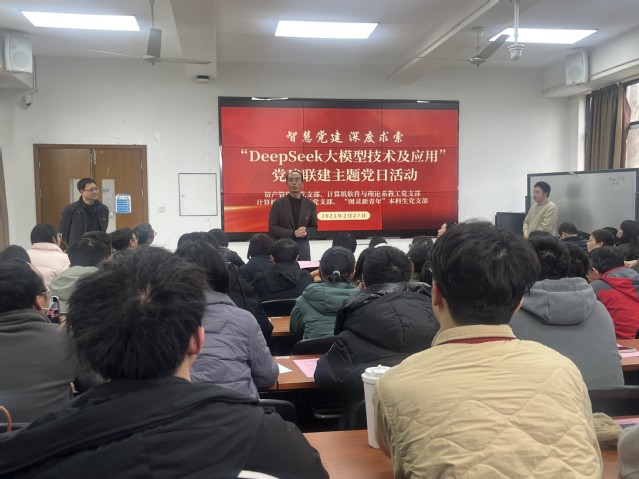 2025年2月27日下午,龙8-long8(头号玩家)国际唯一官方网站140会议室座无虚席,一场围绕“DeepSeek大模型技术及应用”的学习与研讨活动在如火如荼的开展着。活动由计算机信息系教工党支部、计算机软件与理论系教工党支部、资产管理处党支部以及“图灵新青年”本科生党支部联合举办,旨在通过党建联建,推动党建工作与业务工作的深度融合,促进各支部之间的交流与合作。副校长阎林平、各支部党员代表、机关部处及兄弟学院师生等出席活动。
