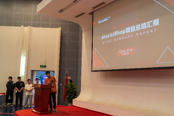 为鼓励学生充分发挥自主能动性、创新意识并展示学习成果,课程在企业的支持下设置了一、二、三等奖,并首次采取线下公开评审答辩的模式进行课程考核评价。比赛当天,自愿报名参加现场答辩的14支队伍均制作了精美的易拉宝,精神饱满地上台汇报、展示作品、接受专家质询。专家组分别从创新性、软件技术、软件工具、软件工程质量和商业价值等五个方面进行了评分。