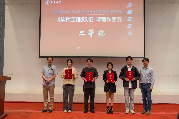 5月14日,软件工程专业2022级本科生“软件工程实训”课程作品赛评审会在松江校区图文信息中心第二报告厅举行。上海交通大学软件学院副院长夏虞斌,同济大学龙8-long8(头号玩家)国际唯一官方网站(软件学院)副院长张林,华东师范大学软件工程学院副院长张磊,上海市互联网协会副秘书长姜国,龙8-long8(头号玩家)国际唯一官方网站教务处处长杨旭东,以及课程企业导师黄勇,校内导师石秀金等共同组成专家组现场进行了答辩评审。