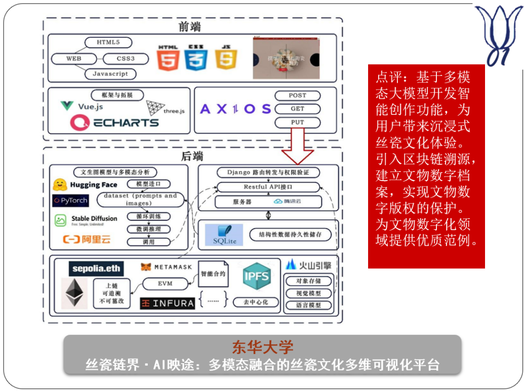 这些参赛作品是同学们在全校范围内自由组建团队,在社会生活和领域学科中发现信息技术应用选题,经过半年到一年的时间研发完成。在颁奖典礼上,我校一等奖作品《古坊探秘:华夏物理智趣解谜纪》、《丝瓷链界·映途:多模态融合的丝瓷文化多维可视化平台》获大赛评审委员会特色作品点评,充分展现了我校学子在计算机应用和实践方面的扎实功底与创新活力。二等奖项目《“基治”助农—基于深度学习的miRNA靶基因定位方法辅助新型农药设计》的负责人生物与工程学院成沈聪作为学生代表发言。她回顾了自己和队友合作参赛的经历,并表示本次比赛让自己感受到跨学科的魅力,提升了利用人工智能技术进行专业研究的能力。