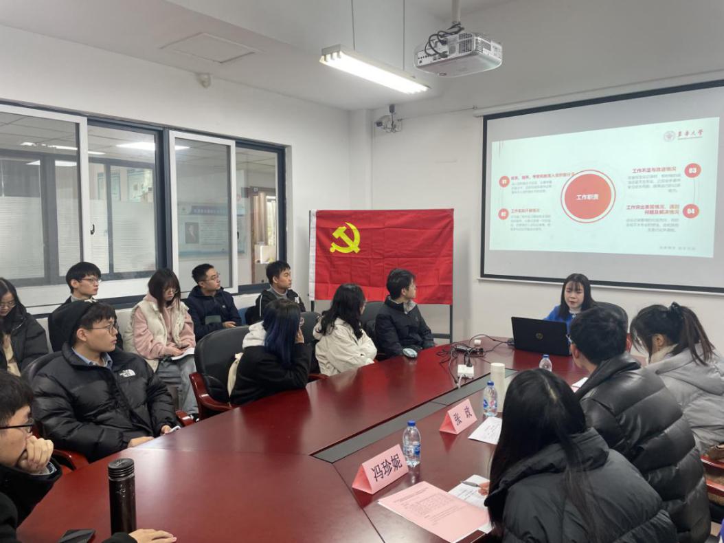 校组织员赵北琳老师在认真听取学生汇报后,对党员们在政治思想、科研学习、工作职责等方面所做的努力给予了充分肯定。她指出研究生党支部属于高知识分子集体,学生在做好自身本职工作同时,要时刻谨记共产党员身份,注重党组织纪律规范,发挥先锋模范作用,始终以高标准严格要求自己,坚持向优秀共产党员看齐。最后,赵北琳鼓励研究生党支部再接再厉,持续推进四维导师制度,以高质量党建引领学院、学科高质量发展,为中国特色“双一流”和“奋进东华”建设出力!