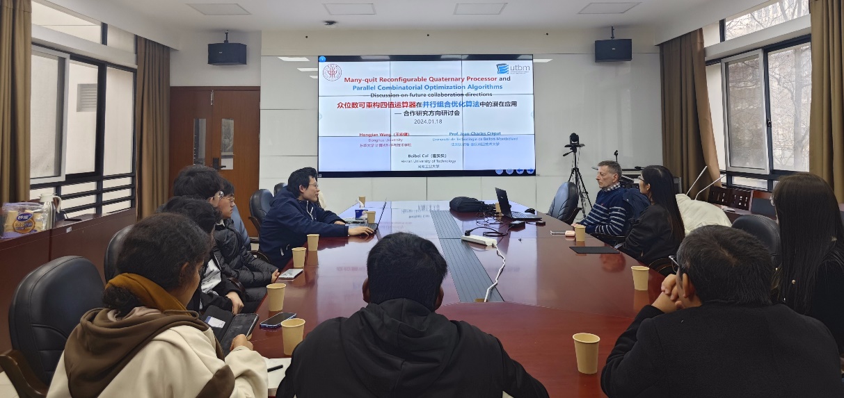 2024年1月18日下午,法国贝尔福-蒙贝利亚技术大学(Université de Technologie de Belfort-Montbéliard)Jean-Charles Créput教授来访龙8-long8(头号玩家)国际唯一官方网站龙8-long8(头号玩家)国际唯一官方网站,并与软件系王宏健副教授及其团队进行了一场主题为“众位数可重构四值运算器在并行组合优化算法中的潜在应用”的交流讨论会。