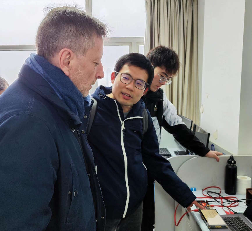 会后,所有参会人员一同参观了王宏健副教授团队的实验室和研究成果。研究生谷兴权同学介绍并演示了团队研发的“众位数、可重构多值电子运算器演示系统”,让参观人员现场体验了可重构多值运算器具备的运算器位数众多、运算器位可分组、硬件运算功能可重构、可实现无进位并行加法器等优于现有处理器的诸多特点。研究生韩屹晨同学介绍了团队研发的“视频流实时加解密实验系统”和“以太网实时加密通信实验系统”,演示了利用可重构四值逻辑运算器可实现高清视频数据的实时加解密和以太网加密传输,展示了这种新型运算器在数据加密方面的应用潜力。Créput教授以及其他参观人员对王宏健副教授团队的研究成果给予了高度评价。