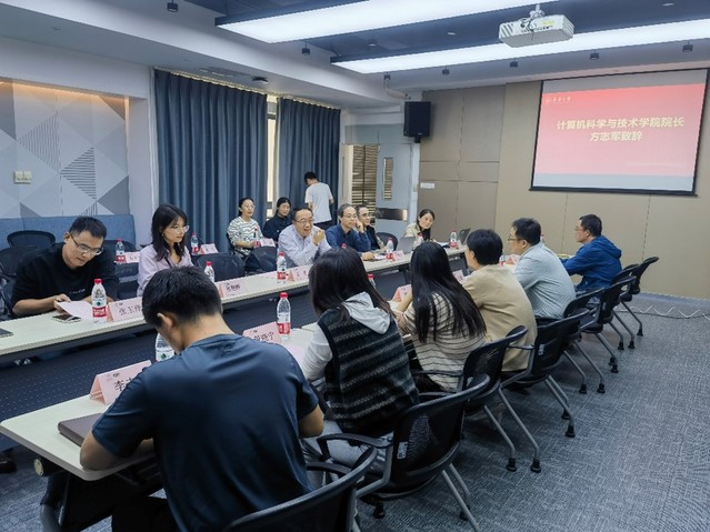 石秀金介绍了计算机实验教学中心的发展情况,让与会党员更加清晰地认识到聚焦智能科学、服务纺织领域是双方学科交叉融合的关键点。