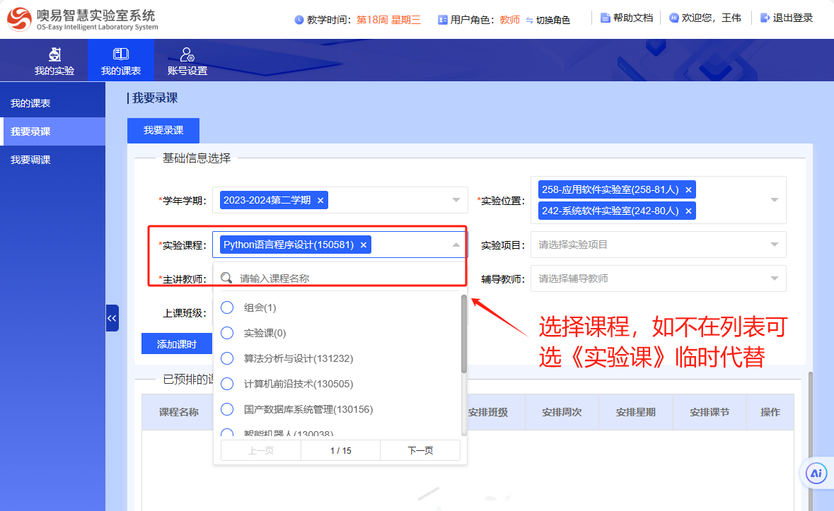实验教学排课系统是专计算机实验教学中心设计的在线选课平台,旨在简化选课流程,提高教学效率,并确保实验室资源的有效利用。该系统为教师和学生提供了方便快捷的选课服务,同时确保了实验教学的质量和安全。